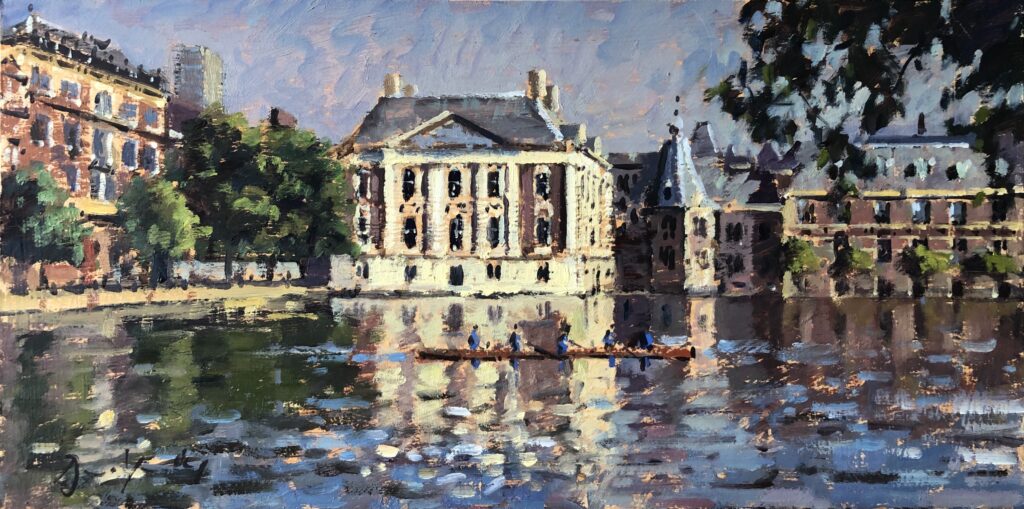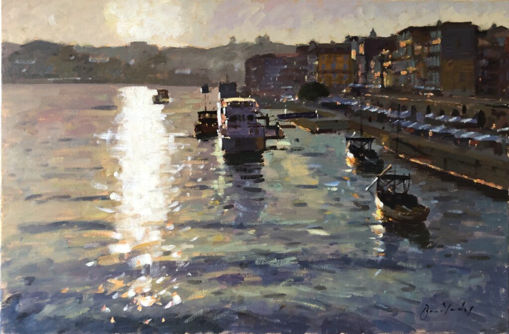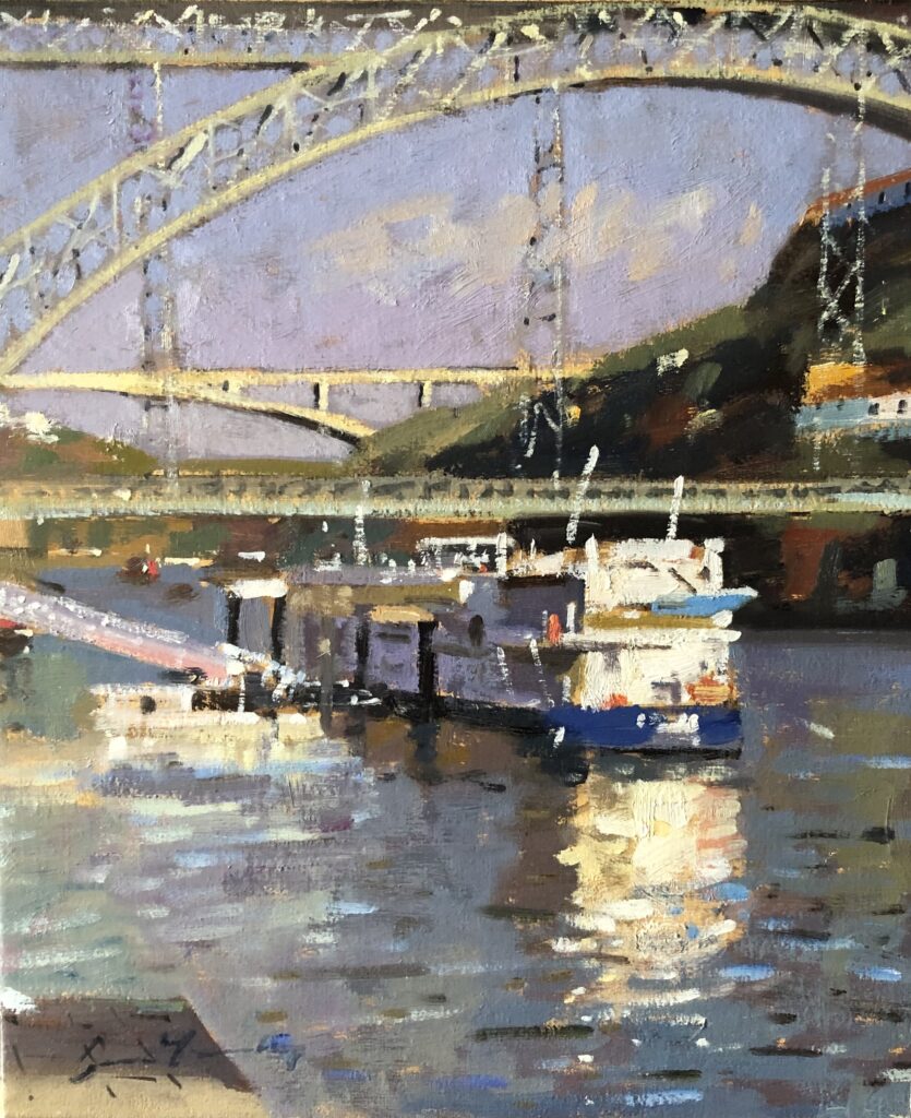 Silver Light, Oporto, 51 x 76cm, Oil on CanvasOporto: View from the Bishop’s Palace, 51 x 76cm, Oil on CanvasBoat Trips on the Douro, 30 x 76cm, Oil on CanvasEvening Sun, Oporto, 41 x 30cm, Oil on CanvasPonts Couverts, Strasbourg, 20 x 51cm, Oil on BoardMauritshuis and Coxed Four, The Hague, 20 x 41cm, Oil on BoardWinter Sun, Cambridge, 20 x 40cm, Oil on BoardDouro Mooring, Oporto, 30 x 25cm, Oil on CanvasPalladian Bridge, Stowe II, 25 x 30cm, Oil on BoardTemple of Ancient Virtue, Stowe, 25 x 20cm, Oil on BoardWaterfront, Newcastle, 15 x 30cm, Oil on BoardBoats and Buoys, Dartmouth, 10 x 25cm, Oil on Board