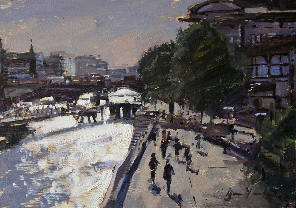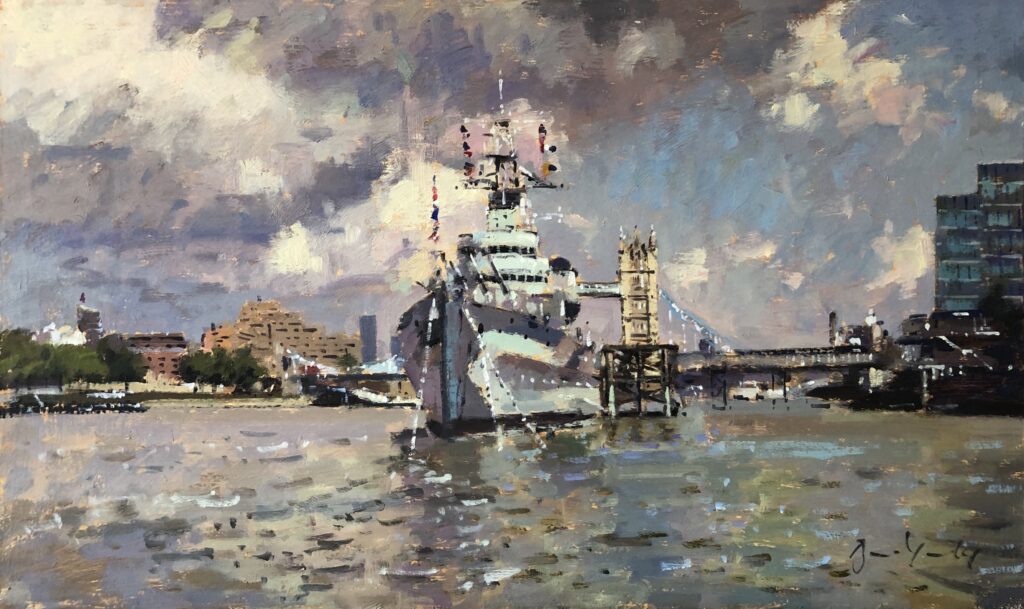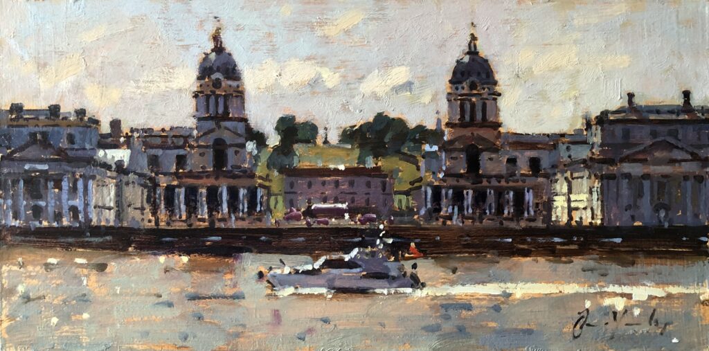 National Gallery, Trafalgar Square, 30 x 61cm, Oil on CanvasHMS Belfast: Morning, 30 x 51cm, Oil on CanvasHM Belfast: Afternoon, 30 x 51cm, Oil on BoardOrange Umbrella, St James’s, 41 x 30cm, Oil on CanvasAlbert Memorial, 25 x 20cm, Oil on BoardHMS Belfast and Friend, oil on board, 15cm x 30cmGreenwich Hospital, Park Front, 15 x 30cm, Oil on BoardGreenwich Hospital, River Front, 15 x 30cm, Oil on BoardAlbert Embankment from Millennium Bridge, 18 x 25cm, Oil on Board