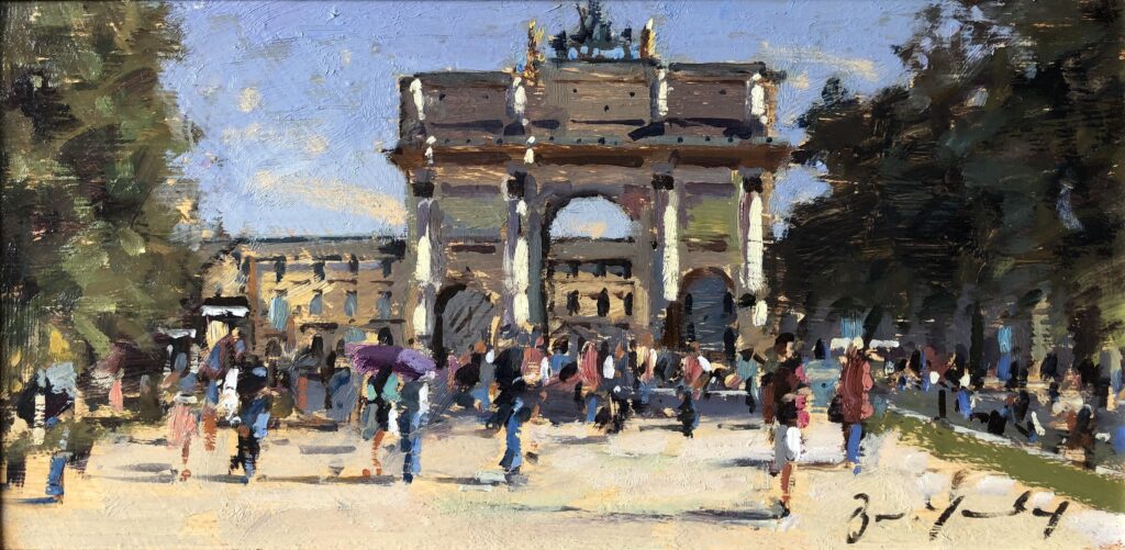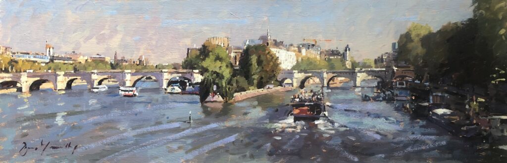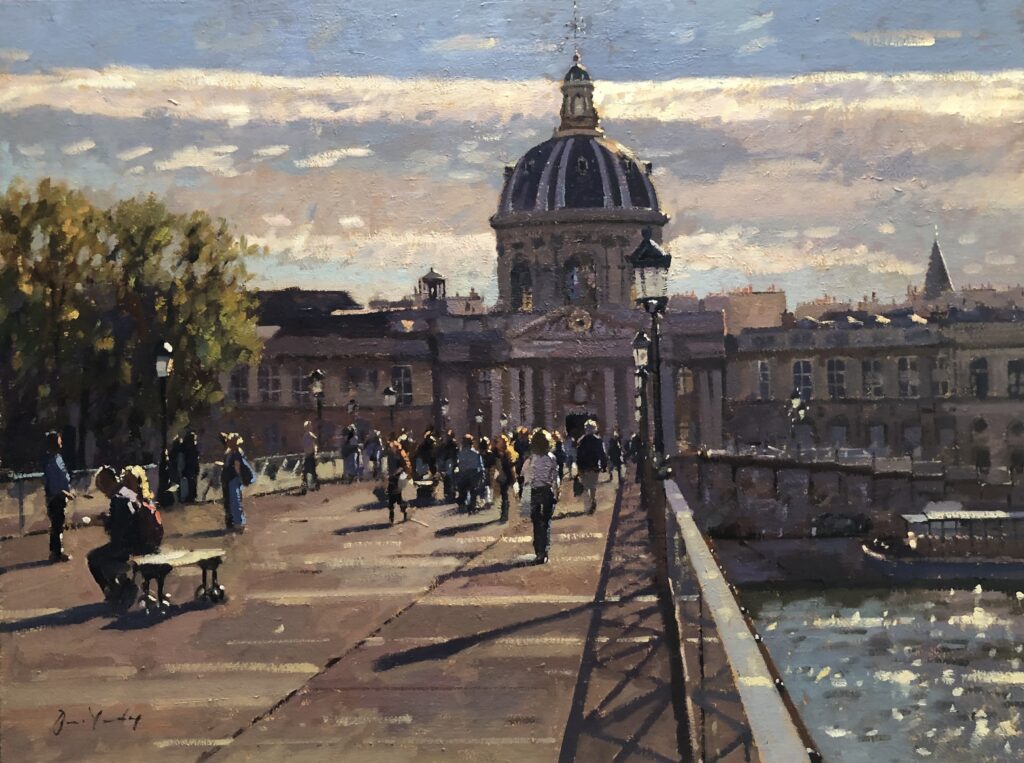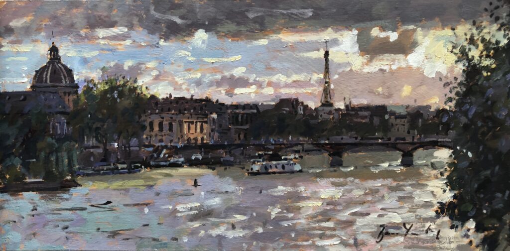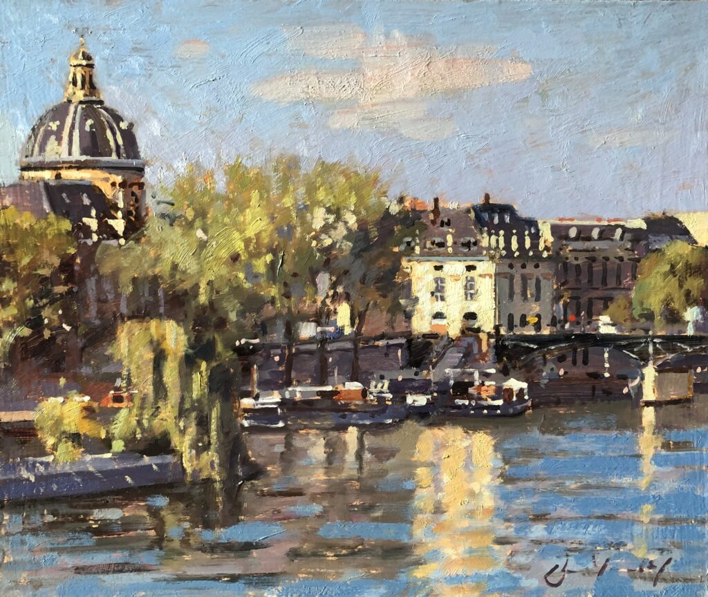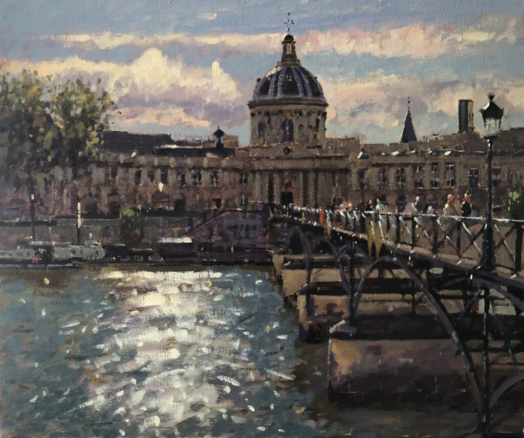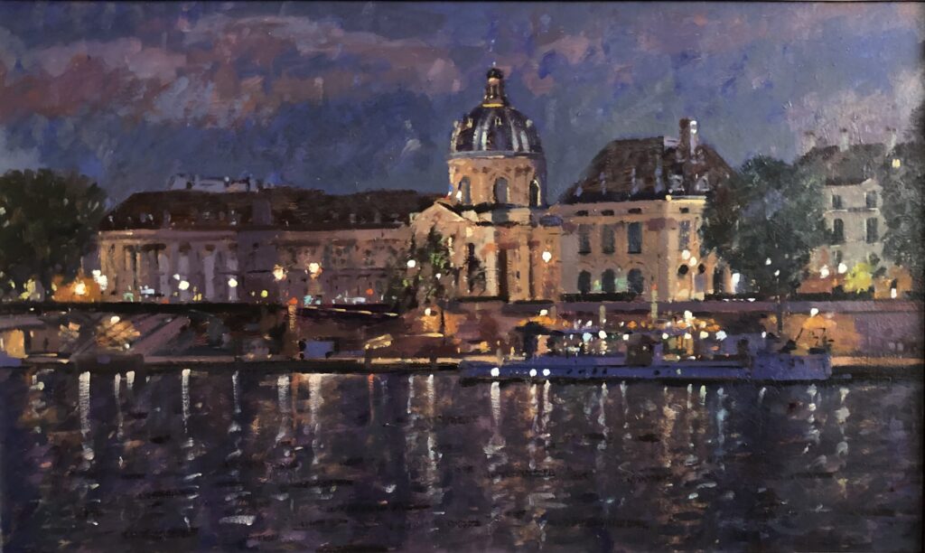 Pont des Arts Contre-Jour, 76 x 102cm, Oil on CanvasInstitut de France, Night, 46 x 76cm, Oil on CanvasInstitut de France, 51 x 61cm, Oil on CanvasNotre-Dame at Night, 51 x 41cm, Oil on CanvasBrasserie de l’Isle St Louis, 41 x 41cm, Oil on CanvasPont Solferino and the Seine, 20 x 61cm, Oil on BoardPont Neuf from Pont des Arts, 20 x 61cm, Oil on BoardEiffel Tower from Pont Neuf, 20 x 41cm, Oil on BoardRive Gauche, Morning Sun, 25 x 30cm, Oil on BoardArc du Carrousel, 15 x 30cm, Oil on Board